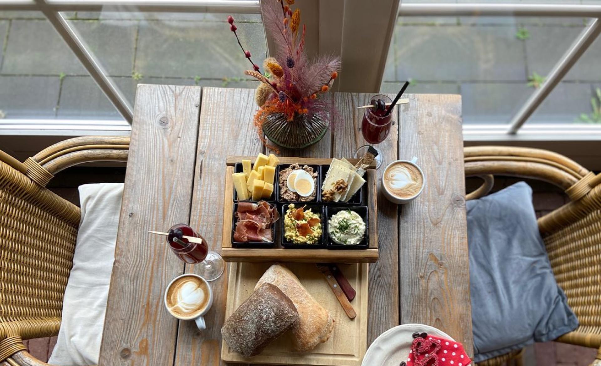 Een sapje van schulp, een proeverij of samen smikkelen en een koffie/ cappuccino of thee met heerlijke bonbons voor €17,50 p.p.